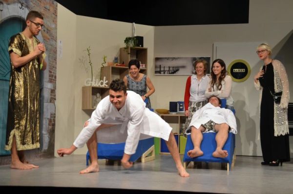 Mit einer gelungenen Premiere eröffnete die Theatergruppe Bütgenbach ihre diesjährige Theatersaison. Insgesamt fünf Mal wird „Wellnessfarm und Liebeswahn“ zu sehen sein. Wieviel Spaß das neue Stück macht, konnte das Publikum am Wochenende erstmalig miterleben.Im Hotel "Zur inneren Ruhe" spielt das Stück. "Wellnessfarm und Liebeswahn", das ist kurz und prägnant umschrieben der Kerninhalt des Stückes. In dem dreiaktigen Schwank von Jennifer Hülser hat die Theatergruppe im Mozartsaal mit viel Witz und guten Pointen gezeigt, was in einem Hotel so alles schief gehen kann. Die Mischung aus guten Gags und leicht schlüpfrigen Anspielungen passen ebenso wie der immer wieder gesuchte lokale Bezug.