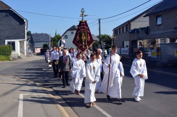 Zum 72. Mal ziehen am 15. August nach dem Gottesdienst um 9.00 Uhr unter Begleitung des örtlichen Musikvereins die Gläubigen von der Weywertzer Pfarrkirche aus zum großen Wegekreuz am Kreisverkehr von Weywertz-Bahnhof (Ober-Weywertz), das unmittelbar nach Ende des Zweiten Weltkrieges errichtet wurde, weil die Ortschaft größtenteils von der Ardennen-Offensive verschont geblieben war. Vor 21 Jahren, im August 1995, wurde an dieser Stelle ein neues Kreuz errichtet, das mit der Anlage des Kreisverkehrs im August 2006 eine weitere Aufwertung erfuhr. Die Stufen, die zum Kreuz hinaufführen, wurden dabei passend aus Bahnschwellen angefertigt. Unterwegs macht die Prozession Station an mehreren Haltestellen, so an der Kapelle, die nach dem Krieg von der Familie Schäfer errichtet wurde, wie auch an der festlich geschmückten Lourdes-Grotte am Struck, ehe sie sich auf dem Friedhof auflöst.