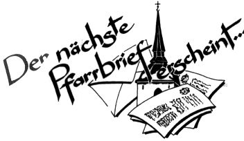 Unser Pfarrbrief 2018Dem Pfarrbrief vom 29. Oktober 2017 liegt ein UMSCHLAG und Überweisungsformular bei mit der Bitte um einen Beitrag (Richtpreis: 10,00 €), damit Euer Wochen-Pfarrbrief auch im Jahr 2018 erscheinen kann. Danke für Eure Unterstützung oder Spende.
