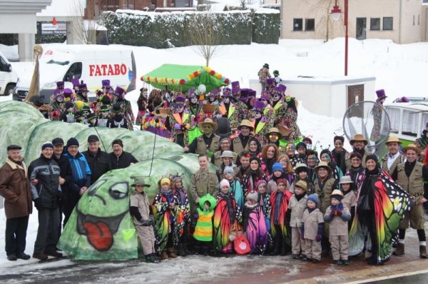 Die ortseigenen Gruppen aus dem Burgort Bütgenbach waren insgesamt elf Mal im Rosenmontagszug vertreten, so eine herrliche Gruppe bunter Schmetterlinge mit der großen Raupe Nimmersatt. 1960 war beim Umzug eine Raupe mit 16 Männern hergestellt worden, die in diesem Jahr nachgebaut wurde. Früher fuhren Fahrräder unter der Raupe, heute sind es Wagen, die von Rasenmäher-Traktoren gezogen werden. Mit 70 Personen war wieder der Bütgenbacher Ortsteil "Am Hügel" mit einer tollen Nachbarschaftsgruppe als mexikanische Totensänger und rollendem Totenkaffee vertreten. Weitere Familiengruppen mit super Motiven als Wilder Westen mit tobendem Saloon und mit vielen Bütgenbacher Clowns in einer lustigen Clown-Parade.