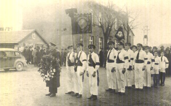 1933 bekam der Turnverein im Rahmen eines großen Dorffestes seine Fahne. Ein Fest wie selten zuvor erlebte im Frühsommer das ganze Dorf. Die Fahne zeigte auf der Vorderseite das Turnerzeichen mit den vier "F": Frisch, Fromm, Fröhlich, Frei. Auf der Rückseite war der Wahlspruch zu lesen: "In Tat und Wort treu unserm Sport" Im Folgejahr entschloss man sich, neben dem Turnen auch der Leichtathletik einen Platz einzuräumen und somit das Angebot zu erweitern. In diesen blühenden Jahren übernahm Aloys Schumacher das Amt des Vereinspräsidenten.