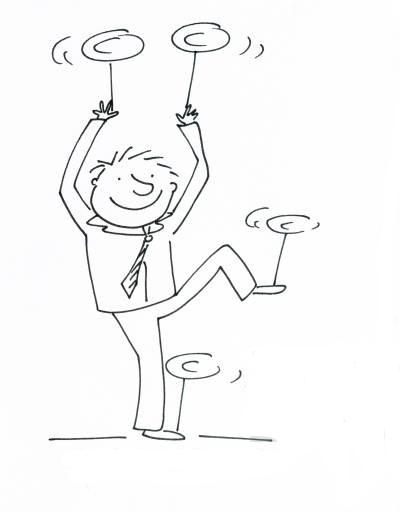 Wer im Zirkus schon mal einen Tellerjongleur gesehen hat, weiß, dass man das nur mit viel Schwung schaffen kann und das richtige Händchen dafür haben muss. Man muss immer die vier Teller im Auge behalten, verringert man die Aufmerksamkeit bei einem davon, ist schnell viel Porzellan zerschlagen.