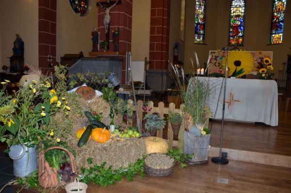 Liebe Pfarrfamilie,Kürbisse, Brote, Kohlköpfe, Äpfel, Weintrauben und Sonnenblumen - prächtige Arrangements von Obst und Gemüse schmücken an diesem Erntedankwochenende wieder unsere Kirchenräume.