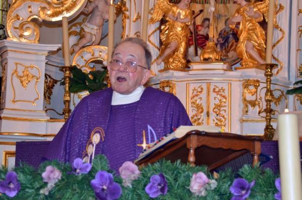 Es war ein Gottesdienst ganz nach dem Herzen des Jubilarpriesters mit den vielen Menschen, denen er in seinem langen Priesterleben begegnet ist. Und so stand die Eucharistie unter dem Motto "Ich will dir danken, Herr, aus ganzem Herzen." Sechzig kleine Kerzen, für jedes Priesterjahr eine, brannten im Chorraum der Kirche. Die zahlreichen Gläubigen stimmten, wie in der Eifel (meistens) üblich, aus voller Kehle in das Adventslied "Macht hoch die Tür" ein.