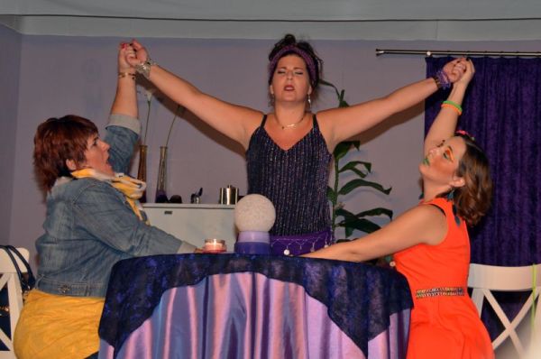 In der Rolle des Regisseurs, als cholerischer Casanova und als Fensterputzer, ist dieser Part Achim Theis mit halbem Schnäuzer wahrlich auf den Leib geschrieben. Beide Rollen spielt er absolut überzeugend und glaubwürdig. Er spielt den Frauenheld, der es nicht lassen kann, seine Fühler nach der holden Weiblichkeit auszustrecken und so nicht nur seine Angetraute Jolante aus dem Konzept ihrer Rolle als Madame Kassandra bringt. Vielleicht kann sie ja tatsächlich hellsehen und den Schmeichler durchschauen? Herrlich, wie sie ihm zwecks Versöhnung unnachgiebig das Schmollmündchen zum Kusse entgegenstreckt: „Küss mich!“ Der Regisseur und Fensterputzer, darauf bedacht, weder seine ehrgeizige Inszenierung noch die Ehe zu gefährden, zieht sich mit einem schmatzenden Bussi auf die Stirn Jolantes aus der Affäre. Dass das zur Besänftigung am Ende kaum reichen kann, ist klar.