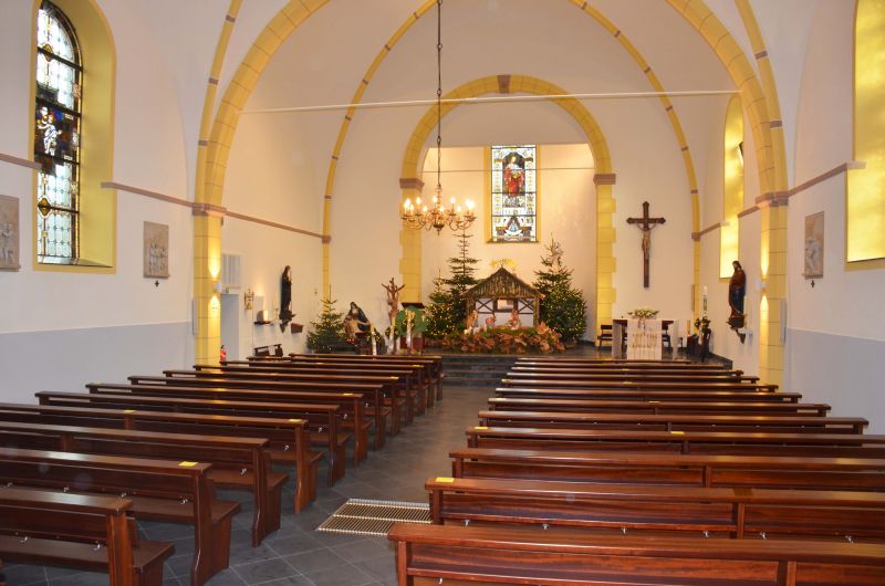 Kirmes erinnert uns an den Weihetag unserer Heimatkirche vor 181 Jahren, nachdem die Kapelle zu klein geworden war und sich außerdem in einem schlechten baulichen Zustand befand. Die Kapelle, die sich dort befand wo heute der Friedhof liegt, war 1696 eingeweiht worden. Die Weihe und der erste Gottesdienst in der neuen Kirche an der „Chaussee“ fanden am 29. Oktober 1840 unter Pfarrer Mathias Gehlen (1837-1860) statt. Sie ist unser Zuhause, das uns einlädt und uns zusammenführt. Sie ist der Mittelpunkt, der uns tröstet, ermutigt, ermahnt und bindet.